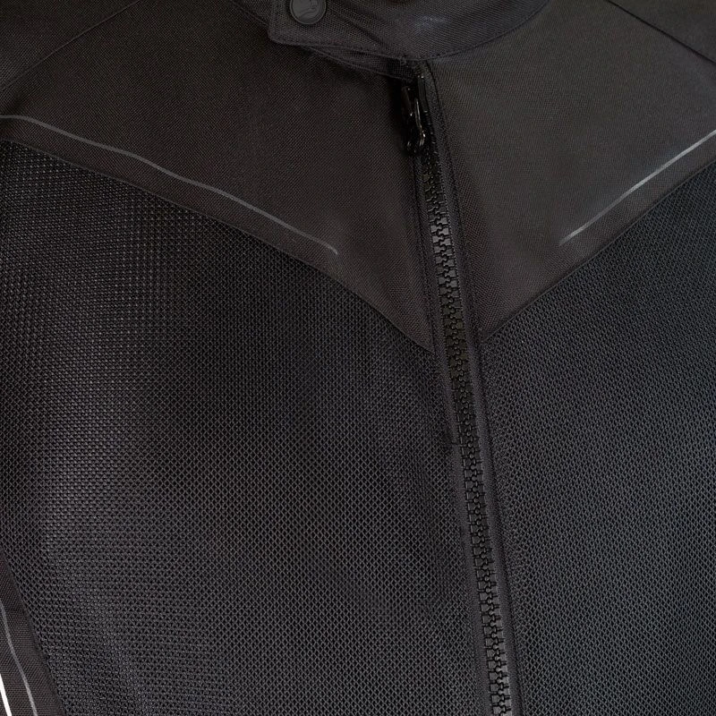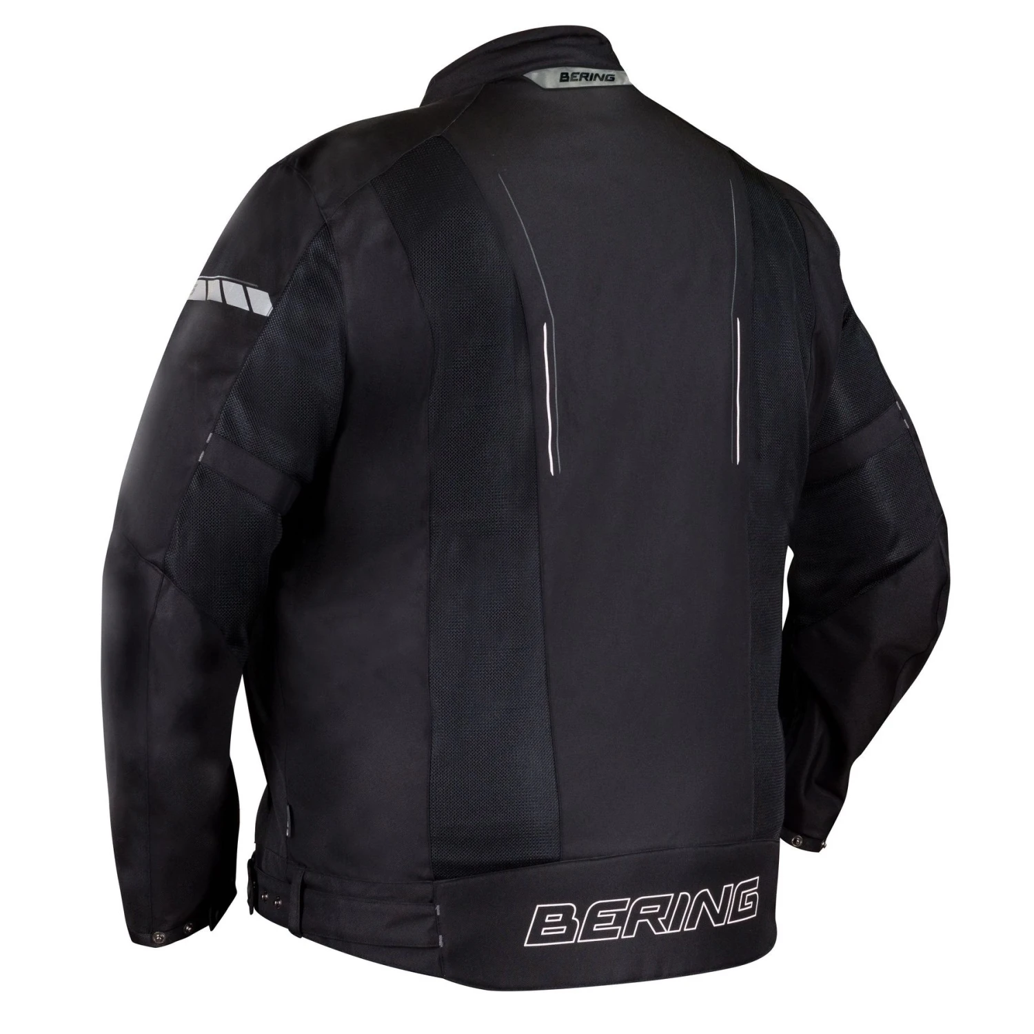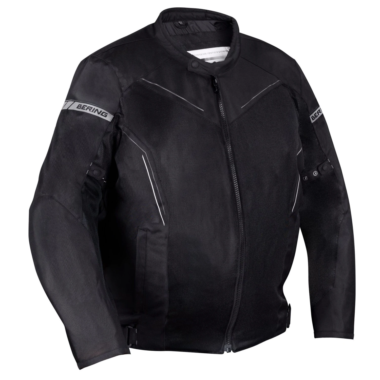 De Bering Cancun is een lichte, textiele jas speciaal voor de zomerse dagen. De grote mesh stukken zorgen voor een koel en aangenaam klimaat in de jas. Bij de jas wordt standaard een regenjas bijgeleverd. Deze regenjas heeft een opberghoes waardoor je hem gemakkelijk kan opbergen maar ook snel tevoorschijn kan toveren bij onverwachte het regen.