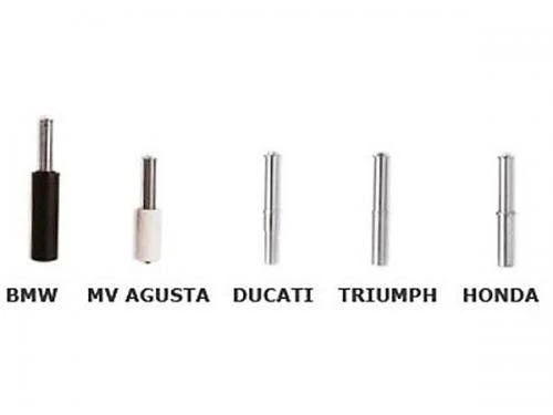 Adapters voor de Bikelift Paddockstand RS-16 Enkele Achterbrug links en rechts. De pin adapters dienen geplaatst te worden op de paddockstond, daardoor pas de paddockstand in de achter as van de motor. Meet de binnenzijde van de as op met bijvoorbeeld een schuifmaat voor de juiste maat. Houd de volgende formaten (en indicatieve motoren) aan bij kiezen van de afmeting: