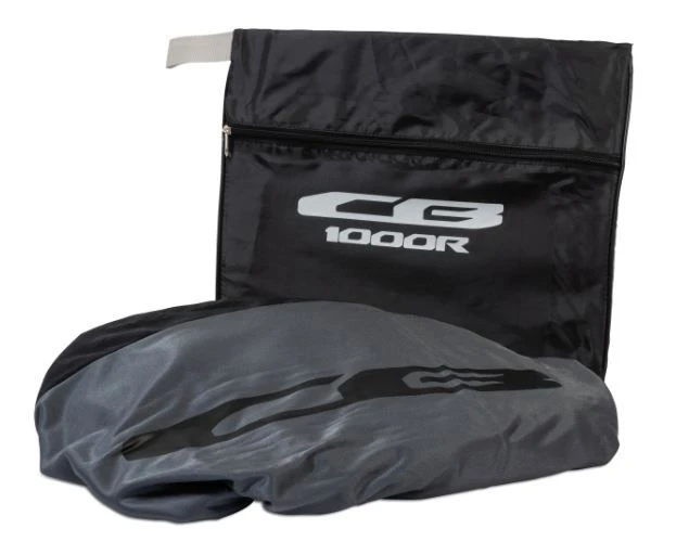 Zwart met grijze motorhoes speciaal ontworpen voor de CB1000R. Gemaakt van duurzaam polyester materiaal om krassen en stof te voorkomen tijdens het opslaan van de motorfiets. Deze hoes is voor een indoor stalling.