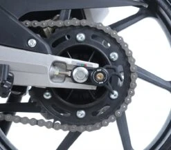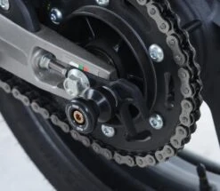 Wanneer er geen schroefdraad in de achterbrug is om een bobbin te monteren kan de R&G “Offset Cotton Reels” gebruikt worden. Zo kan er via de kettingspanner/achteras toch een bobbin op de motor gemonteerd worden en kan de motor dus met een paddockstand veilig en stevig gestald worden. Ook beschermen de bobbins de achterbrug bij een val.
